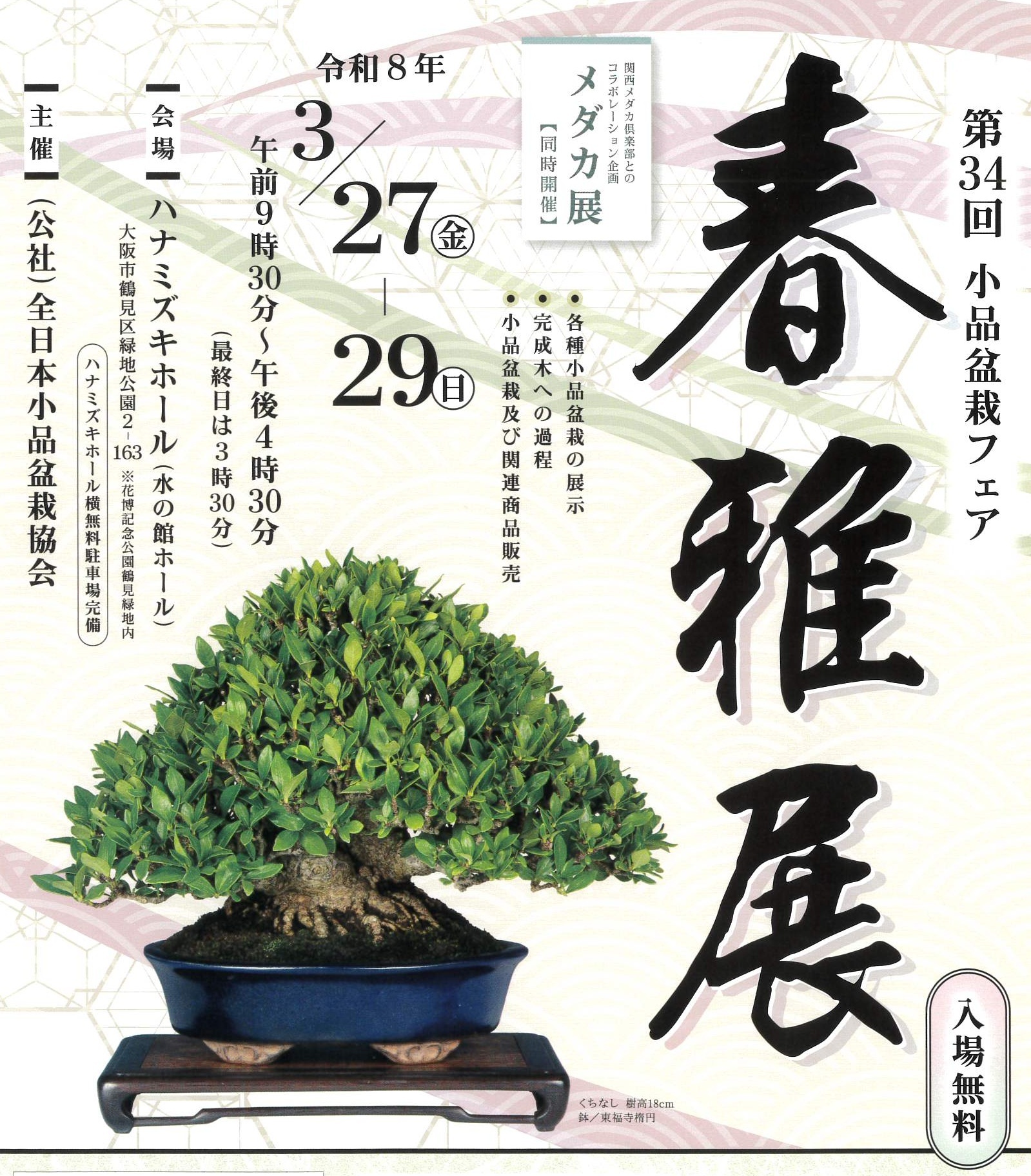 第34回小品盆栽フェア【春雅展】に出店します。